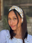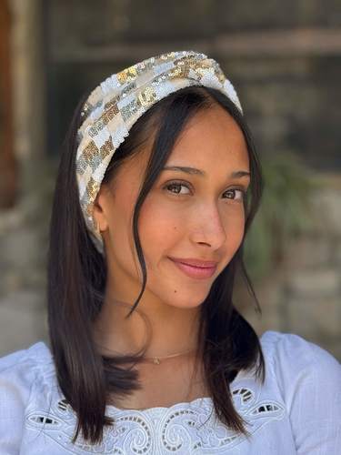 Mini Sequins Headbandb-beige with gold and silver shimmer.