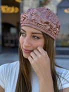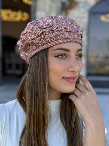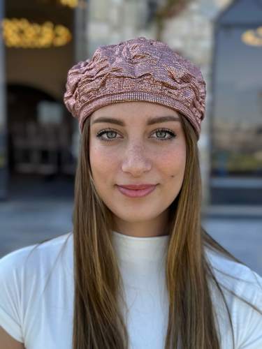 Rouched Beret - Shiny Rose Gold Disco Fabric