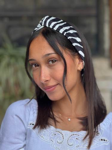 Mini Noy Headband - black and white zebra print in soft chiffon