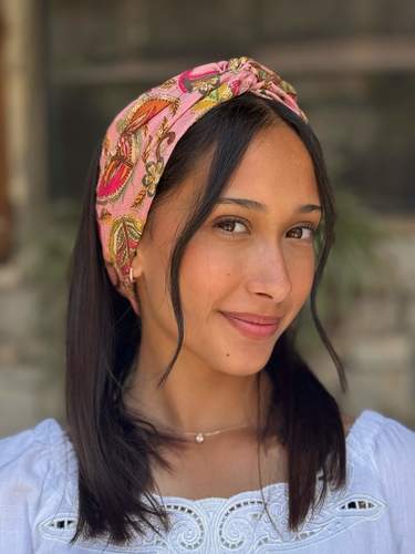Mini Sequins Headband-dusty pink silk-look, paisley & gold sequins