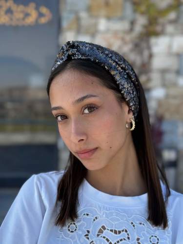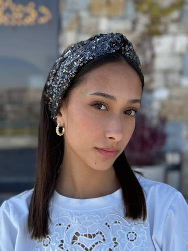 Mini Sequins Headband - Dark Gray Sequin Fabric