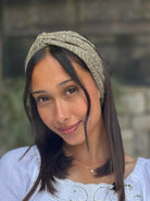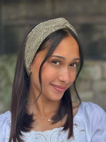 Mini Sequins Headband- khaki green and gold embroidery & sequins chiffon
