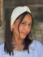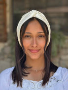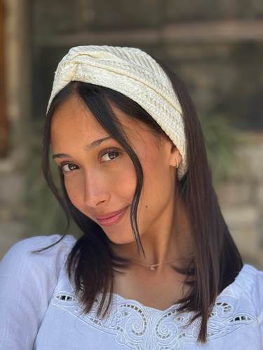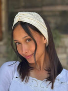 Mini Sequins Headband-off-white brocade with floral embroidery and delicate sequins