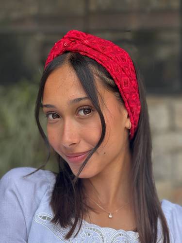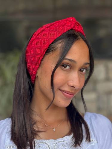 Mini Sequins Headband-red with square embroidery chiffon fabric