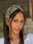 Mini Sequins Headband- gold shimmer and blooming embroidery