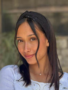 Mini Sequins Headband-black with floral embroidery, gold sequins, and subtle geometric accents