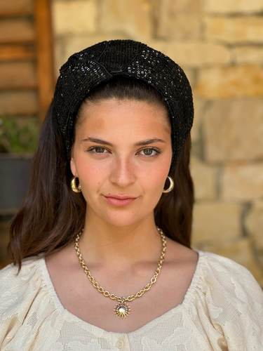 It's come with embellishment knot on the side, and Velcro hook and loop fastener on the back.