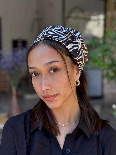 Noa Headband - Black and Cream Zebra Chiffon Fabric