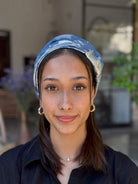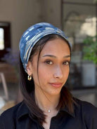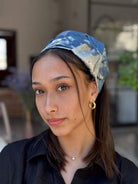 Noa Headband - Light Blue Chiffon with Delicate Gold Brushed Pattern Fabric