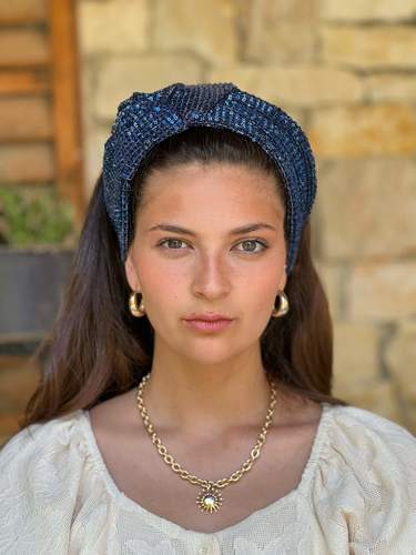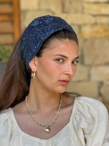 Noa Headband - Navy Blue and Silver Sequin Fabric