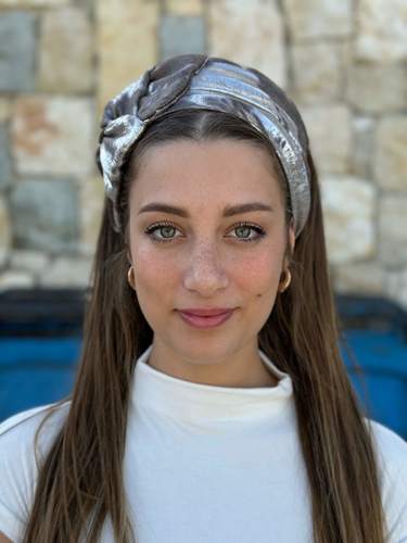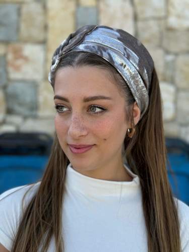 Noa Headband - Silver and Brown Tie-Dye Fabric