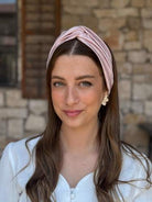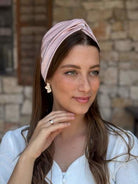 Noy Headband -light dusty pink chiffon hair wrap with studs
