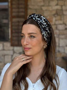 Noy Headband -black and silver leopard print, made from shiny chiffon
