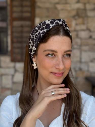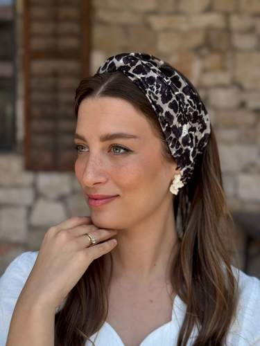Noy Headband - cream and black leopard print chiffon