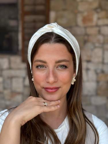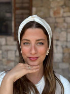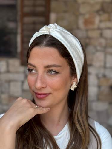 Noy Headband - solid cream hair wrap – crinkled shiny chiffon