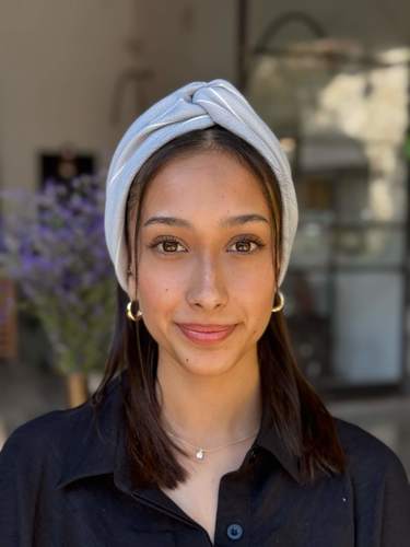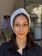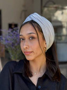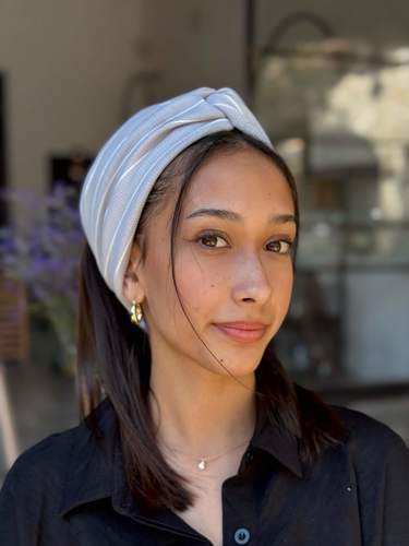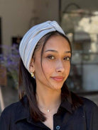 Noy Headband - Light Gray Piqué Fabric with White Stripes