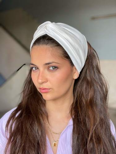 Noy Headband - Shiny Off-White Chiffon Fabric