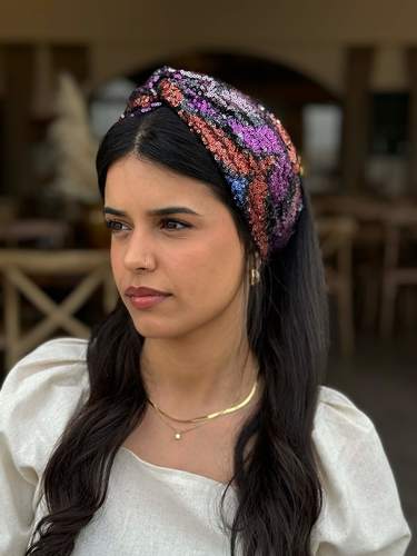 The " Twisted Sequins" headband is a must- have accessory. effortlessly enhances any look.