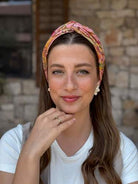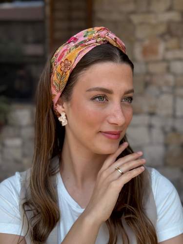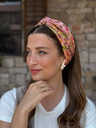 Sequins Headband - pink Satin colorful paisley embroidery & gold Accents
