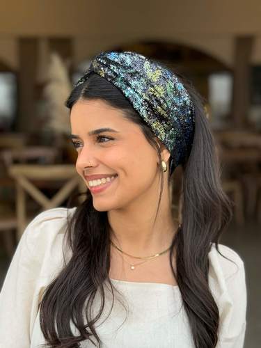 The " Twisted Sequins" headband is a must- have accessory. effortlessly enhances any look.
