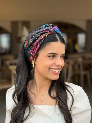 The " Twisted Sequins" headband is a must- have accessory. effortlessly enhances any look.