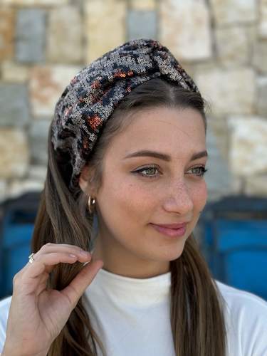 Sequins Headband - Copper Leopard Print Sequin Turban