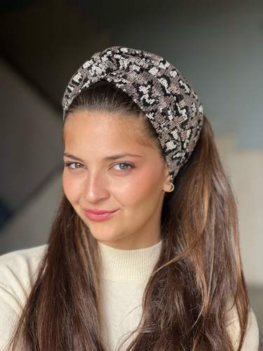 Sequins Headband - Rose Gold Mini Leopard Print Sequin Turban