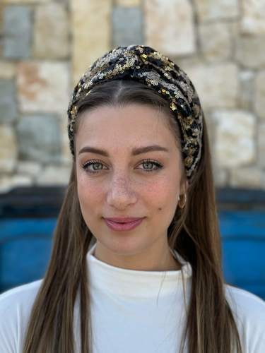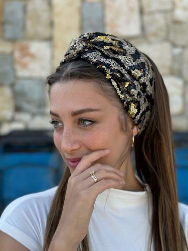 Sequins Headband - Gold-Toned Leopard Print Sequin Turban