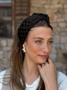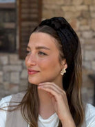 Shir Headband -black hair wrap with velvet polka dots