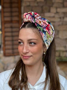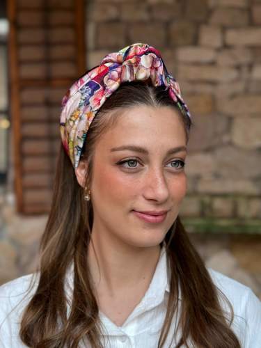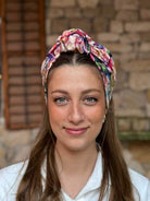 Shir Headband -Colorful floral in shades of pink and purple chiffon