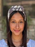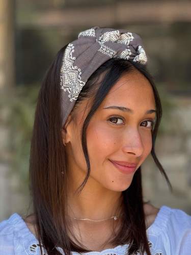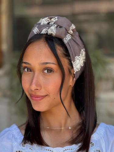 Shir Headband -brown with off-white embroidery cotton fabric