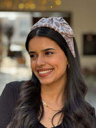 Yael Alice band – Brown Leopard Print with Silver Shine chiffon