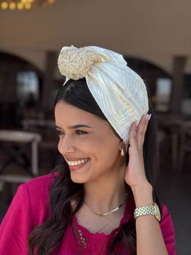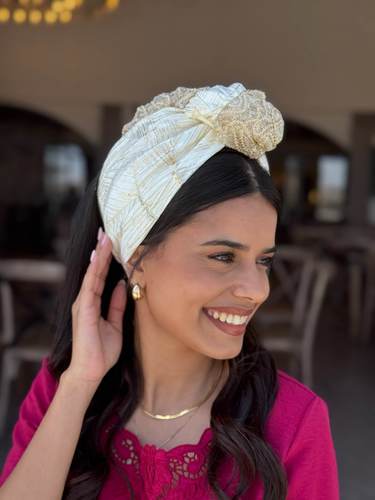 Wide Shir Headband- cream sequin hair tie