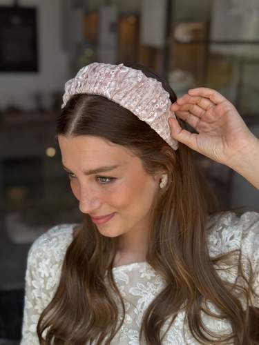 Maya band is the new bow from Imga!!! A stunning bow with a special look of volume and gathers!! Available in chiffon and delicate sequin fabrics! Style in a second!!!! Width up to 6 cm