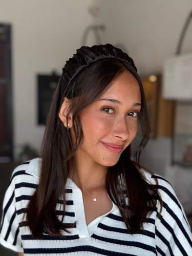 Maya Band - Black crinkled glossy chiffon fabric