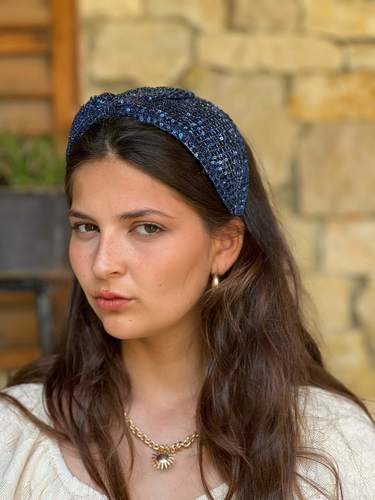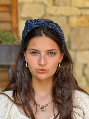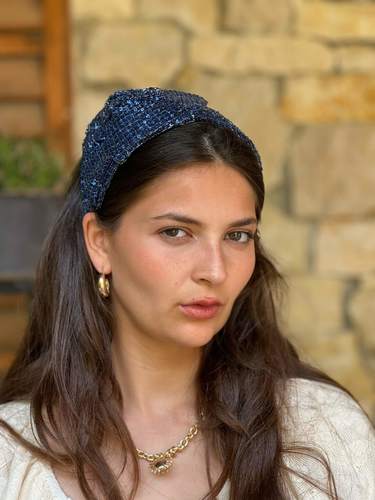 Ayala Hairband - Navy Blue Sequins with Silver Accents