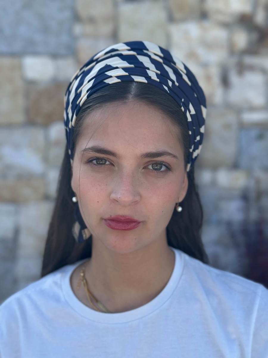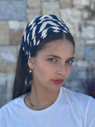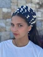 Kozy Hairband - Navy and Cream Geometric Chiffon Fabric