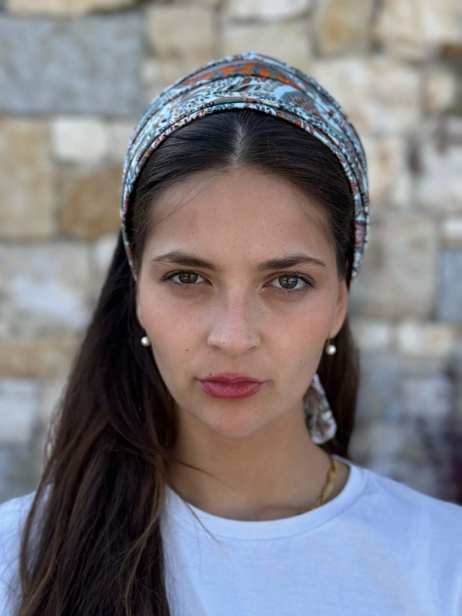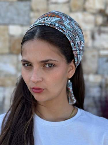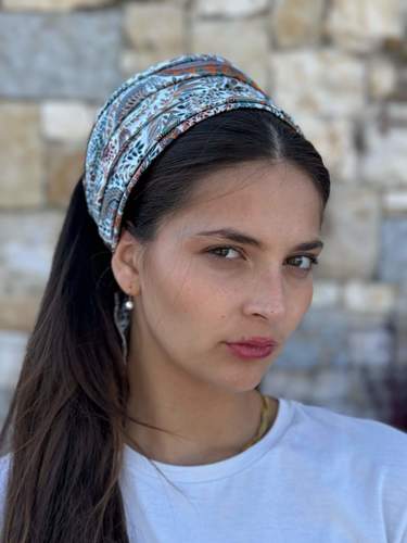 Kozy Hairband - Light Blue Chiffon with Colorful Paisley Floral Pattern Fabric