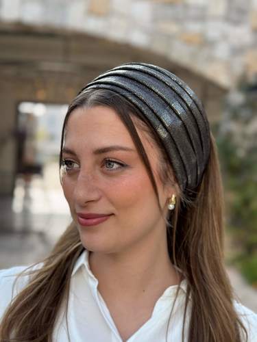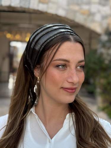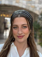 kozy Headband -black and gold striped with an elegant, lightweight finish.