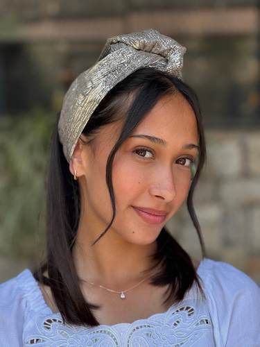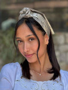 Shir Headband -taupe with distressed goldaccents –hair wrap in soft fabric
