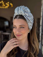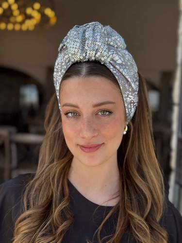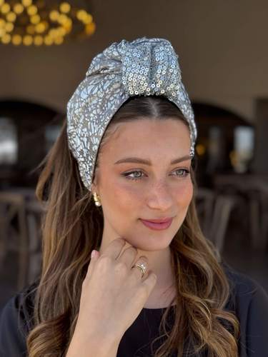 Wide Shir Headband- Silver Sequin brocade hair tie