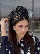 Ziv Headscarf - Black with gold sparkles and shiny spotted fabric