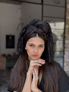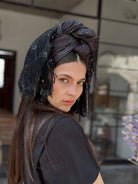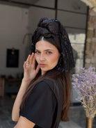 Ziv Headscarf - Black with black flowers and combined with black sequins chiffon fabric