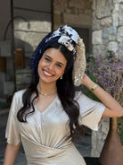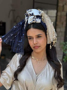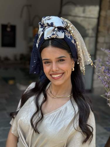 The "Ziv Headscarf" is a beautifully designed accessory made from four different fabrics chiffon, brocade, sequins, and sparkles.